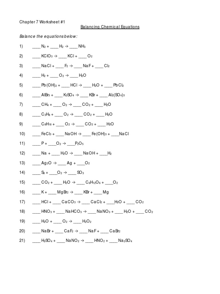 Balancing Chemical Equations Worksheet Answers Chapter 7 Tessshebaylo - Balancing equations worksheet 1 answers worksheets for all from balancing equations practice worksheet answer key , source.