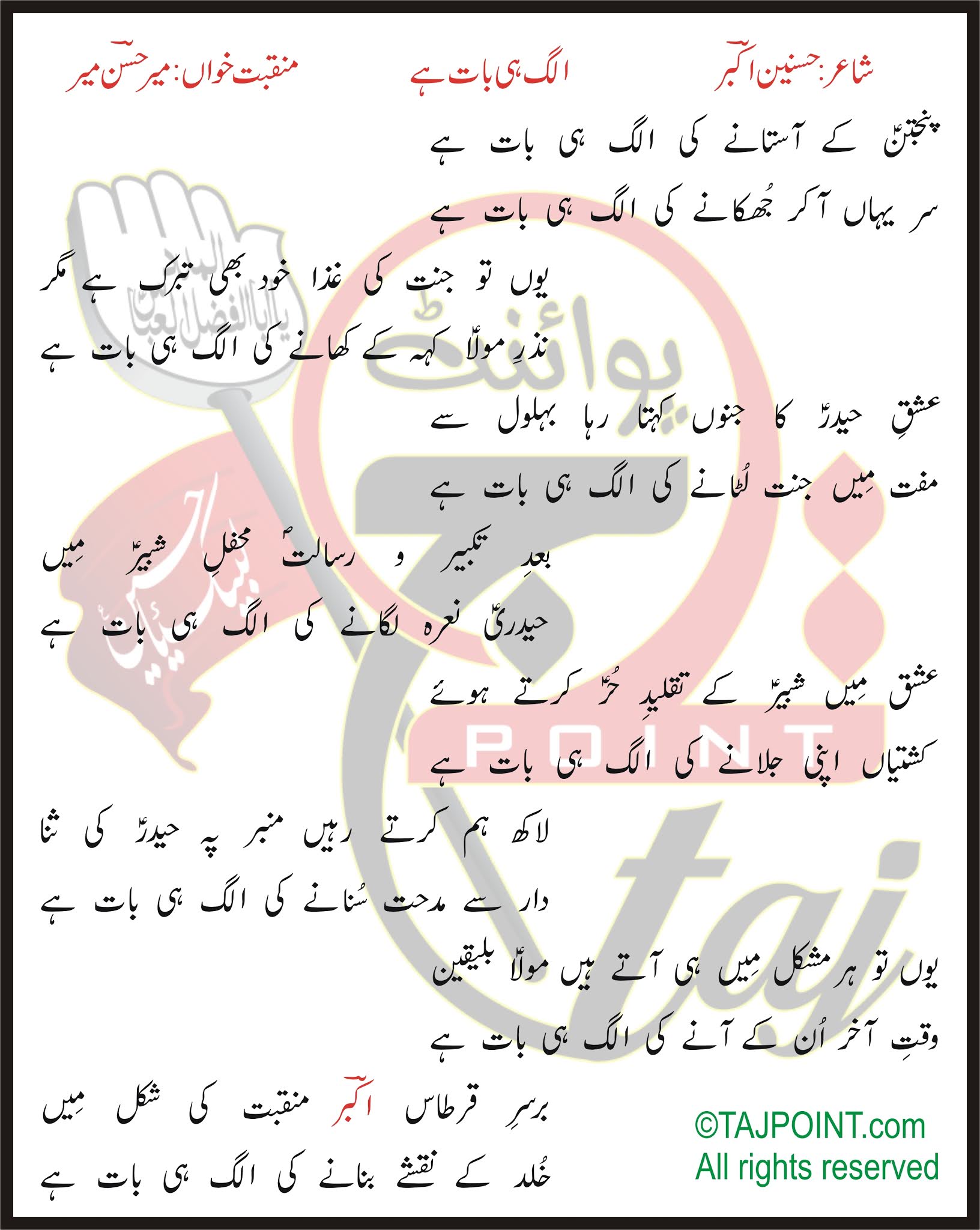 Panjtan Ke Astane Ki Alag Hi Baat Hai Lyrics In Urdu And Roman Urdu - Dil ibadat kar raha hai dhadkanein meri sun tujh ko main kar loon haasil lagi hai yehi dhun zindagi ki shaakh se loon kuch haseen pal main chun tujh ko main kar loon haasil lagi hai yehi dhun.
