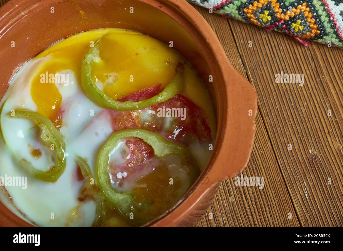 Gyuveche Pots : ✓ free for commercial use ✓ high quality images. Gyuveche Pots - Chopped fresh tomatoes and white cheese are stewed in the closed pot with a lid, and when they are almost ready an egg is cracked on.