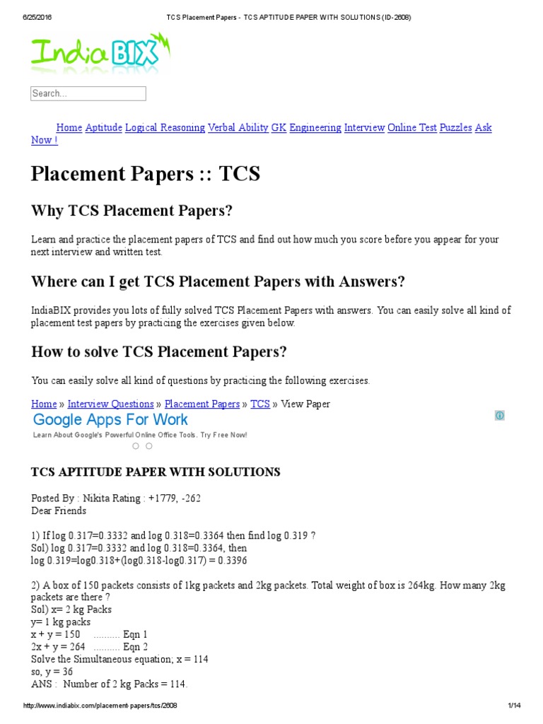 How To Crack The Tcs Aptitude Test Quora - In this section you can learn and practice aptitude (questions with answers) to improve your skills in order to face the interview, competitive examination and various entrance test (cat, gate.