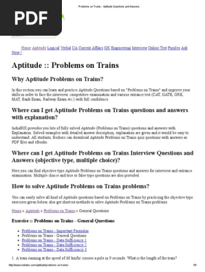 Indiabix Aptitude Questions On Trains / It will help full for the various exam such as bank, ibps, clerk, cat, xat, mat, gre, gmat, sat, ntse etc. Indiabix Aptitude Questions On Trains - 1) problems on trains 2).