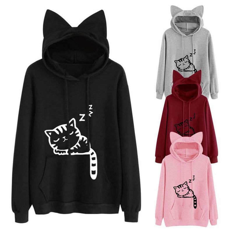 2021 Kawaii Cat Ear Hoodies Women Cute Cartoon Sleeping Cat Print Hooded Sweatshirt Casual Loose Pullover Tracksuit Outerwear From Clothingdh 12 69 Dhgate Com - Get the best deals on cat hoodies & sweatshirts for women.