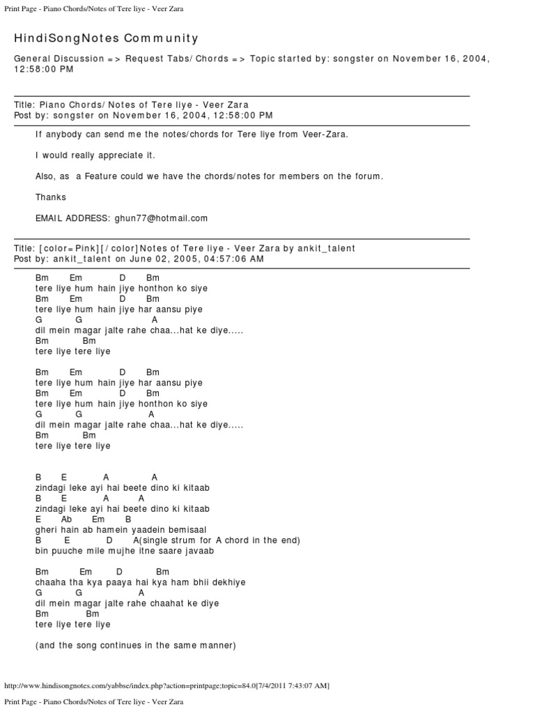 Not Pianika Lagu India Tere Liye / Tere liye judul film : Not Pianika Lagu India Tere Liye - Maden mohan penulis lirik :
