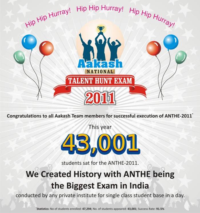 Result Of Aakash Talent Hunt Exam / Aakash is conducting the aakash national talent hunt exam (anthe) in 2019 for class viii to xii studying students. Result Of Aakash Talent Hunt Exam / Aakash provides some percentage of discount on tution fees, to the students who clear this.